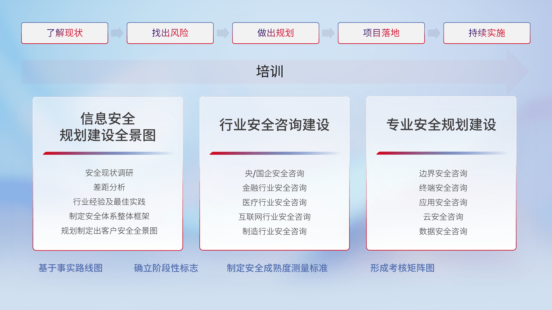 通过专业的法律咨询解读、、合规架构体现、、、差异化解决方案、、测试实施支持等服务,,为客户量身打造等保合规体系。。